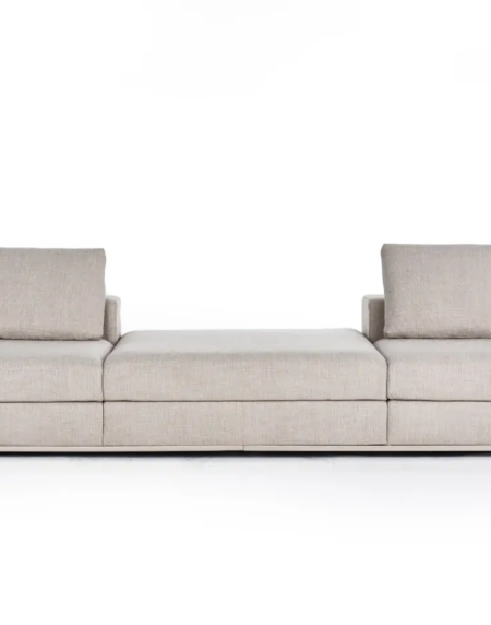 Encostos com almofadas soltas em fibra de poliéster siliconada.