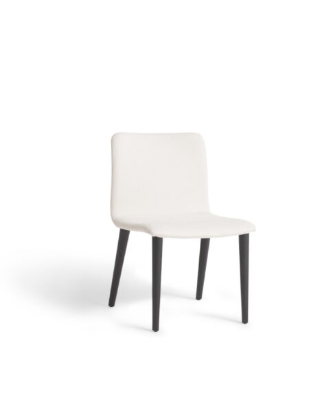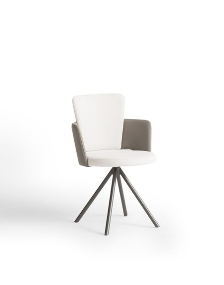 Cadeira em metal e soleta natural com assento estofado.