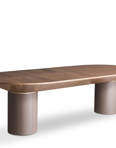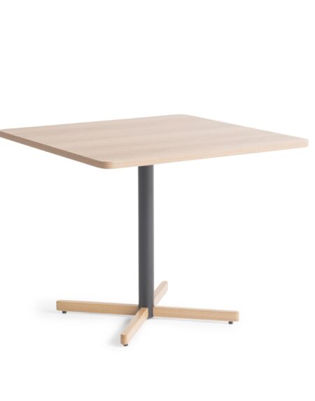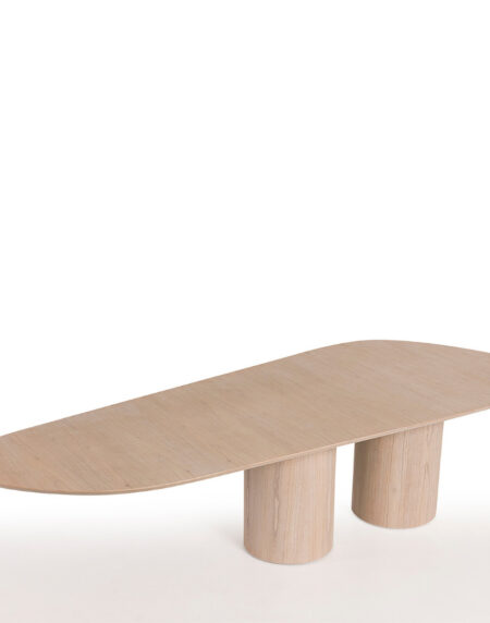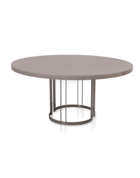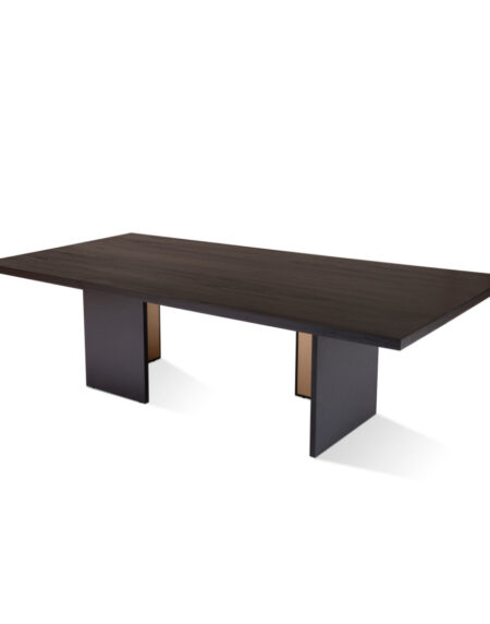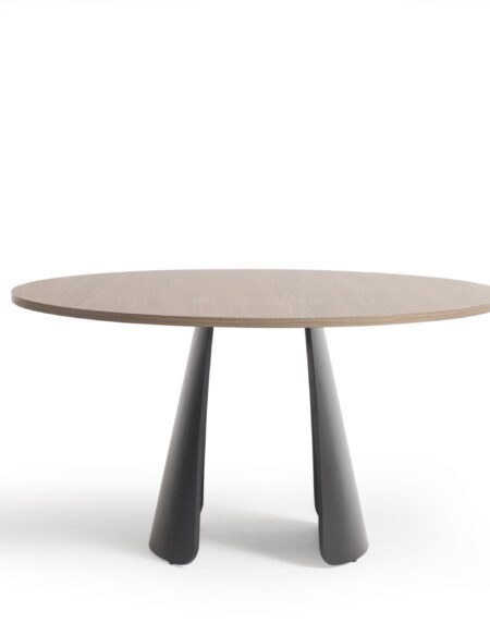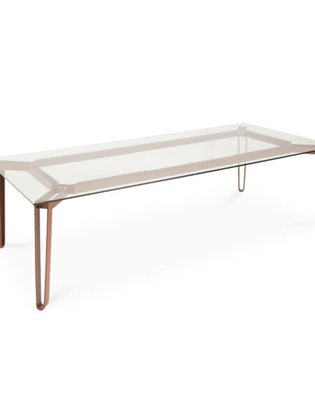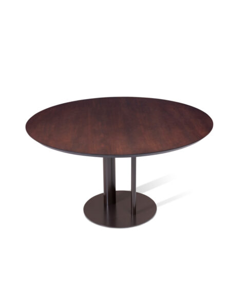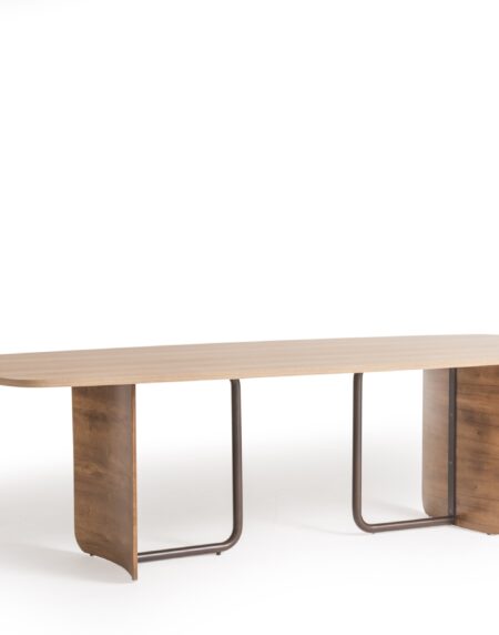 Mesa de jantar com tampo em tabuas maciças de Tauari natural ou tingida. Base em aço carbono pintado.